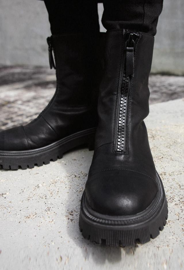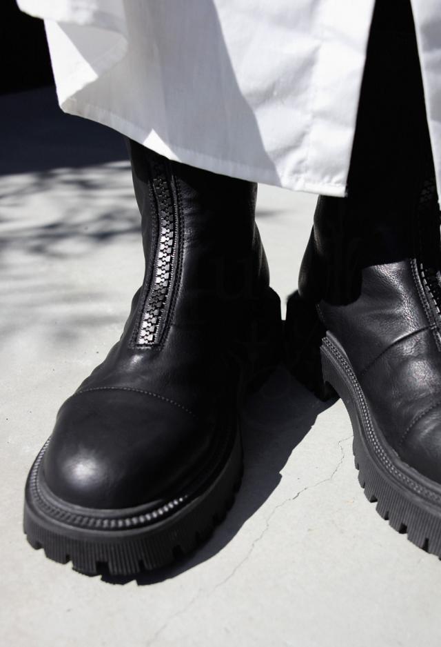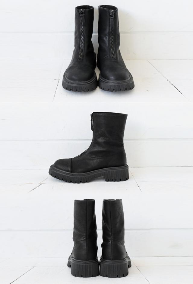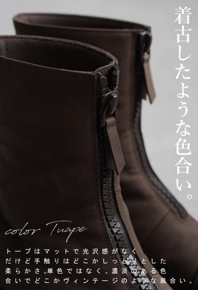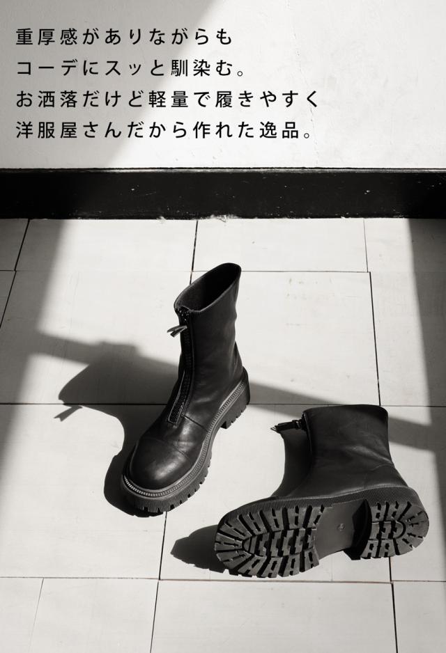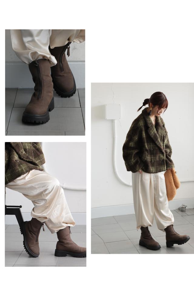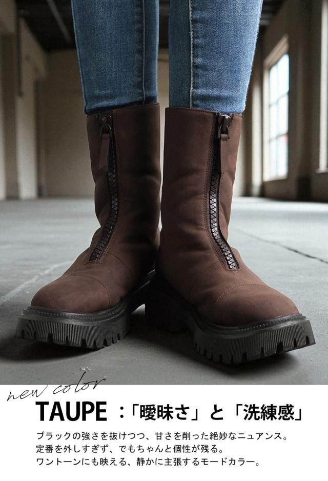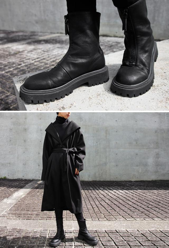 ap-00038 痛くない 歩きやすい フロントジップ ファスナー ボリューム 厚底 タンクソール 軽い 軽量 フェイクレザー 本革風 マット シボ感 ショートブーツ フロントファスナー モード