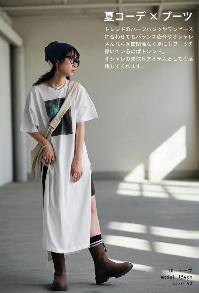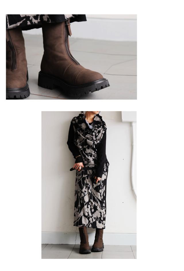 | 普段24.0-24.5cmを履くスタッフY.Mさん | 幅・甲普通 | 39と40を≪靴下≫で試着しました。 39 <幅>ぴったりで窮屈感はありません <甲>少し窮屈に感じます <つまさき>程よくゆとりがあります <かかと>ゆとりはありますが歩いても浮きません 40 <幅>ぴったりで窮屈感はありません <甲>丁度良いフィット感です <つまさき>程よくゆとりがあります <かかと>ゆとりがあり歩いても浮きません <ひとこと>39サイズだと僅かに甲の部分に窮屈感があったので購入するなら40サイズを選びます。 ファスナーも肌に直接当たらないようになっているので、脛部分も痛くならなさそうです。 ファスナーで着脱も楽ちんでした。 |