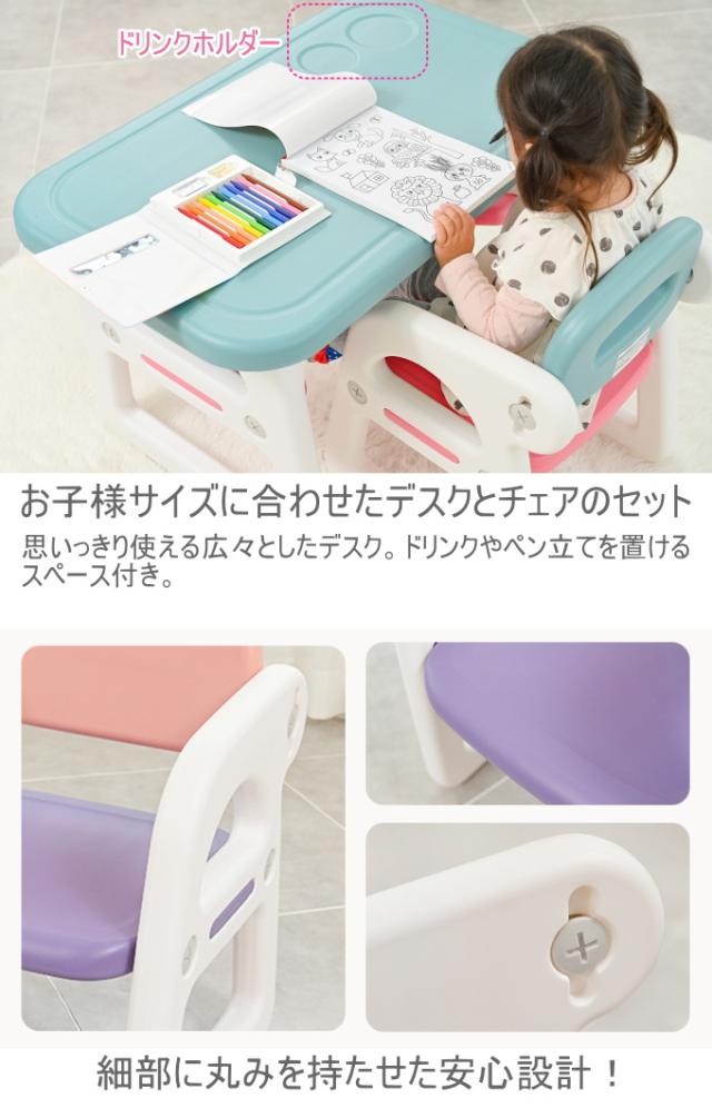 デスク&チェアセット つくえ 机 イス 椅子 デスク チェア テーブル こども 子供 幼児 キッズ 室内用 屋内用 おもちゃ プレゼント おえかき かわいい