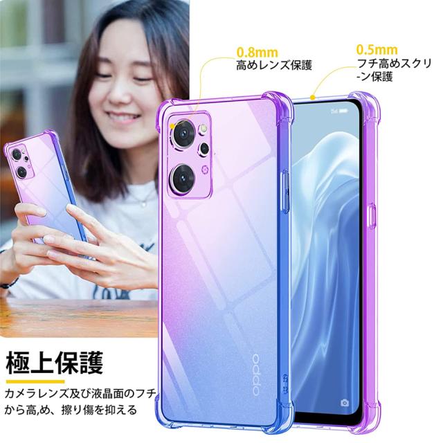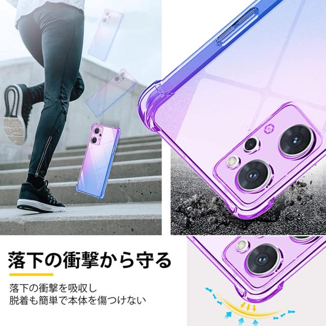OPPO Reno7 A ケース グラデーション TPU ストラップホール付き 米軍MIL規格 OPG04 A201OP クリア 耐衝撃 カメラ保護 オッポ リノ7 a カバー マイクロドット加工 au yモバイル UQモバイル スマートフォン スマホケース