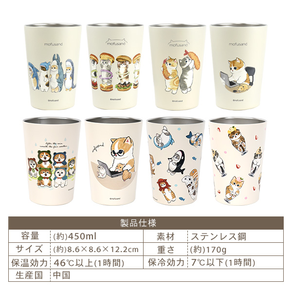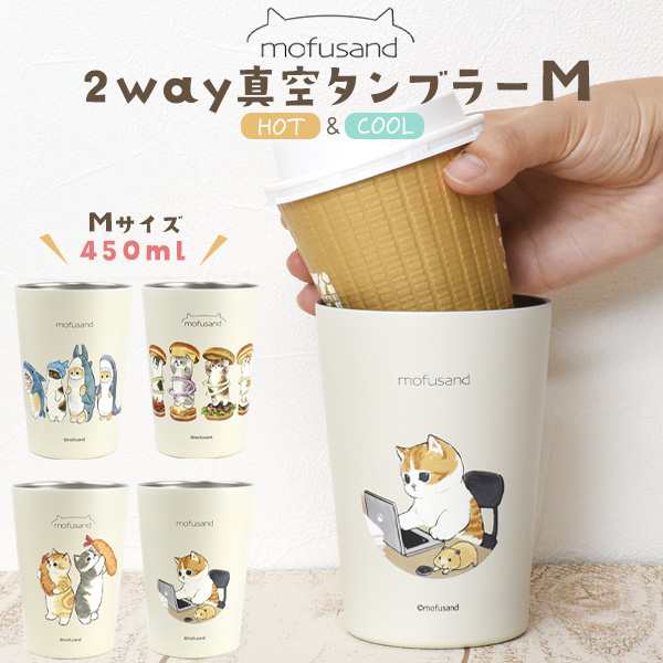 もふさんど 真空タンブラー 450ml Mサイズ 冷たさ長持ち ドリンクホルダー 保温保冷 コーヒー ドリンク 可愛い タンブラー 暑さ対策 熱中症 脱水症 コップ 飲み物 2Way かわいい 雑貨 ギフト 女性 プレゼント 猫グッズ レディース 猫 ねこ イラスト にゃんこグッズ