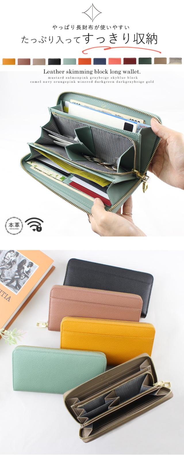 【上質牛革 ・トップレザー使用】長財布 レディース 大容量 財布 使いやすい 本革 上質な牛革 シンプル カード入れ スキミング防止 FRID 通帳入る ラウンドファスナー 小銭入れ 仕切り付き きれいに収納 LIZDAYS リズデイズ 【lz-65116】開運