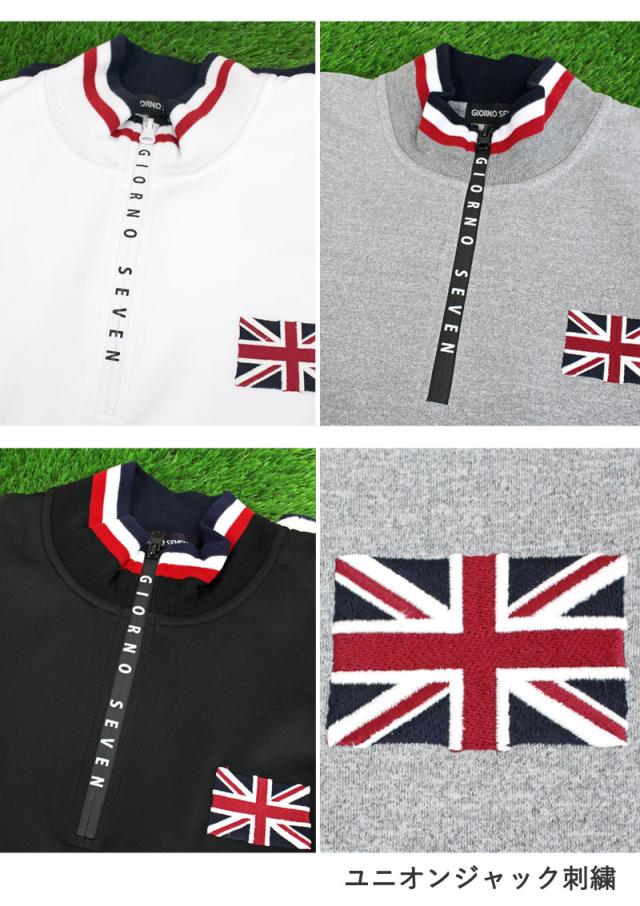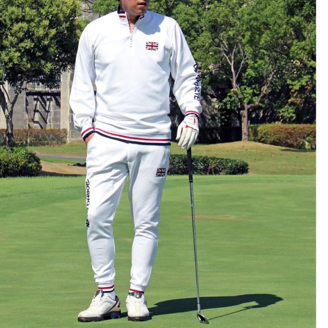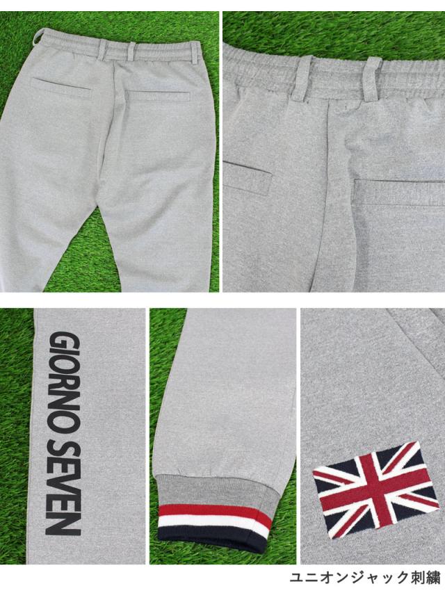 | 特徴 | ゴルフウェアブランド GIORNO SEVEN(ジョルノセブン) 胸元ユニオンジャック刺繍、 袖とハーフジップにロゴプリントしたメンズゴルフスタンドネック プルオーバートレーナーと 裾カラーリブロゴプリントゴルフパンツの 上下セットアップ。 パンツはスリムシルエット。 ウエストゴム仕様で伸縮し穿きやすく ベルトループも施され 内側ひも調整でもベルト装着でも可。 サイドポケットは安心の両ファスナー仕様。 滑らかな上質ポリポンチ素材で ストレッチ性もありスポーティ。 年間通してロングシーズン着用可。 | |||||