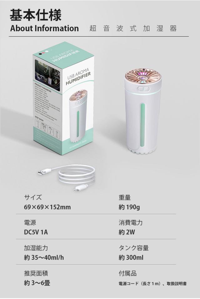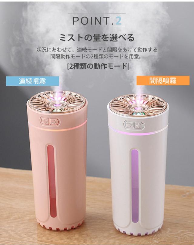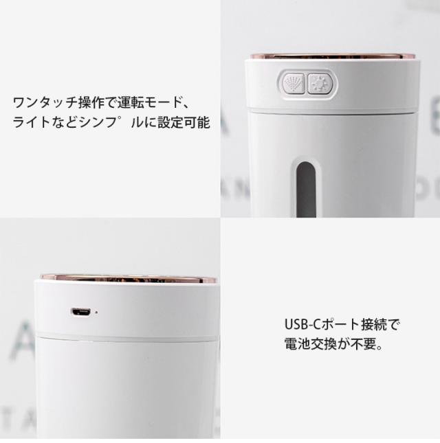 加湿器 超音波式 卓上加湿器 300ML容量加湿器 車載加湿器 コードレス USB-C充電式 ミニ加湿器 オフィス 7色ナイトライト 持続噴霧 間隔噴霧 2つモード 車載使用 アロマ 充電式 除菌 空焚き防止 静音設計 おしゃれ 簡単収納