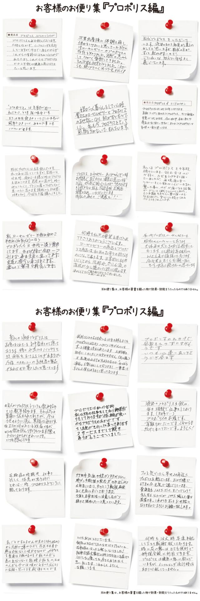 | [注意事項] | プロポリスに含まれる蜜ろうがコップに付くと落ちにくくなるため、紙コップか決まったコップをご使用下さい。 ※喘息や重度のアレルギー症状のある方は飲用を避けて下さい。 ※プロポリス濃縮エキスにエタノールを使用していますので、アルコールに対して過敏に反応する恐れのある方は飲用を避けて下さい。 |
