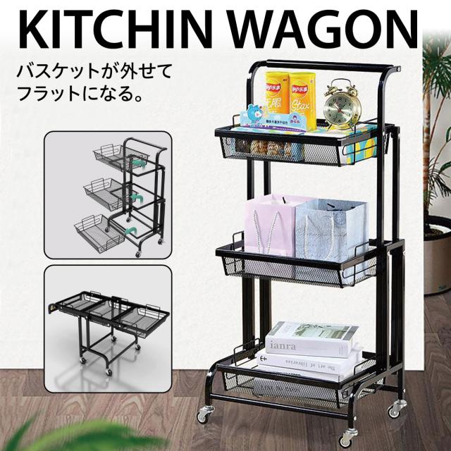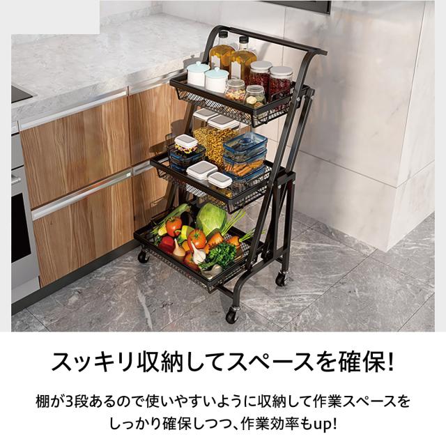 キッチンワゴン キャスター付き 3段 収納ラック 3段可動式 キッチンラック おしゃれ 省スペース 新生活 kitchen-wagon