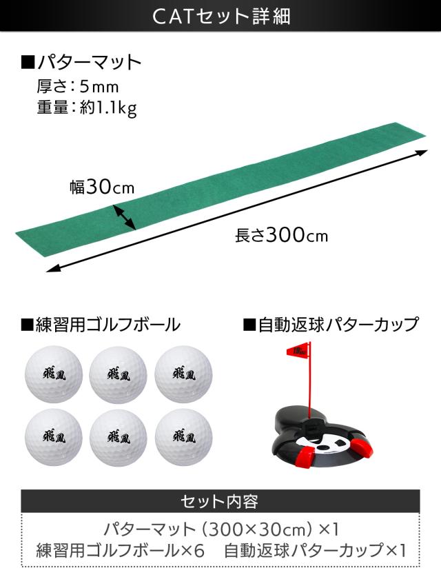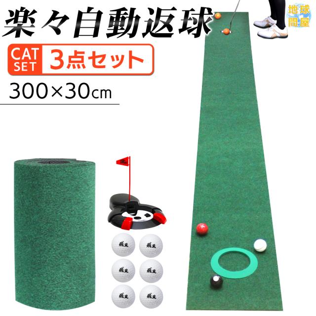 パターマット 3m ゴルフ 300×30cm Jシリーズ CATセット パター 練習 マット 室内 静音 ゴルフマット ベント 芝 パッティング パター練習 パット練習 絨毯 カーペット ゴルフボール 自動返球パターカップ