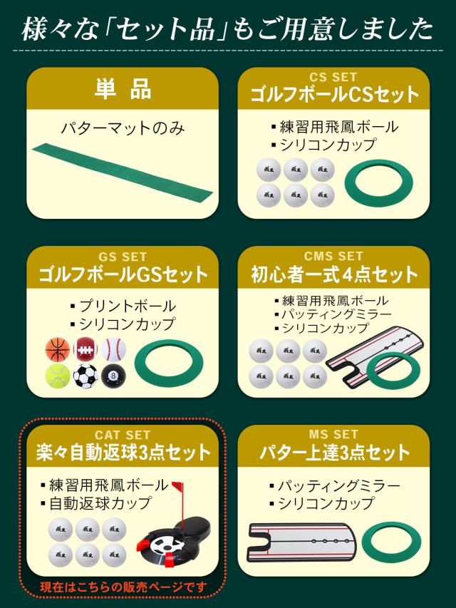 パターマット、練習用ゴルフボール6個、自動返球パターカップ