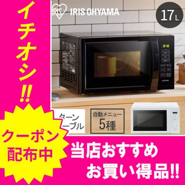 \500円OFFクーポン!~12/19 9:59/電子レンジ 本体 単機能 17L 650W 500W 200W ターン ターンテーブル アイリスオーヤマ ホワイト ブラック 白 黒 シンプル 一人暮らし ひとり暮らし 新生活 レンジ コンパクト おしゃれ 送料無料