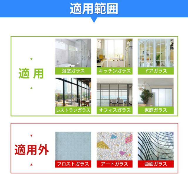 貼り付け片:ガラスに水をスプレーし、底膜をはがし、静電吸着