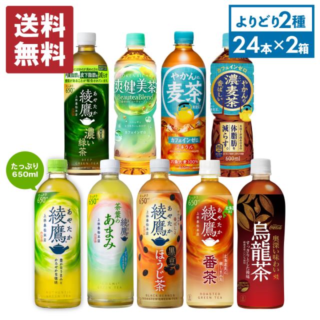 お茶 ペットボトル 緑茶・日本茶各種 綾鷹 爽健美茶 525ml-650ml×24本 選べる2箱 計48本【送料無料】