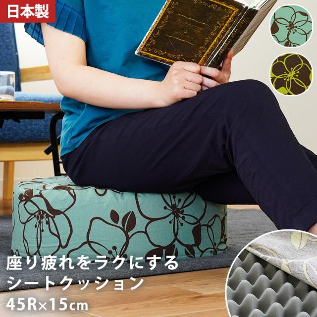 クッション 座布団 座り疲れをラクにするシートクッション 約45R×15cm ラウンド ラインフラワー ハイタイプ 綿100 北欧調 日本製
