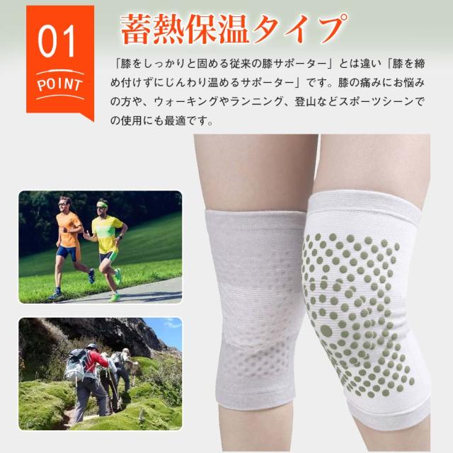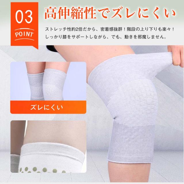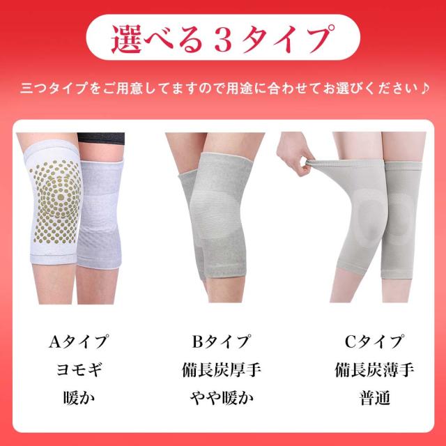 ●厚手タイプは温かさをプラスする素材「ヨモギ」「竹炭」を使用しており、自然な保温性を生み出し、血行を促進し血流がよくなり、膝にかかる負担を減らせます。