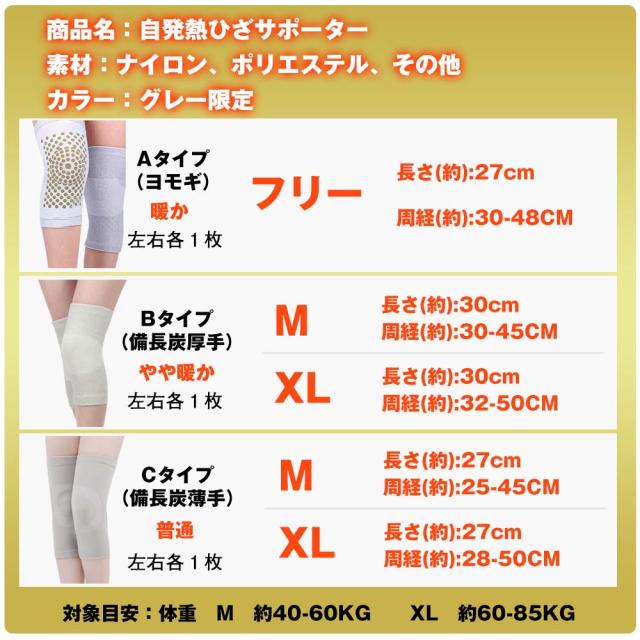 Bタイプ(備長炭厚手) / M - 長さ(約):30cm - 周経(約):30-45cm / XL - 長さ(約):30cm - 周経(約):32-50cm ;