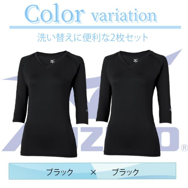 【2枚セット】ミズノ スクラブインナーシャツ レディース 7分袖 MZ-0134 医療用 白衣 看護師 女性用 アンダーシャツ 吸汗速乾 DRY インナーウェア アンダーウェア 介護士 クリニック 制服 ストレッチ オールシーズン MIZUNO