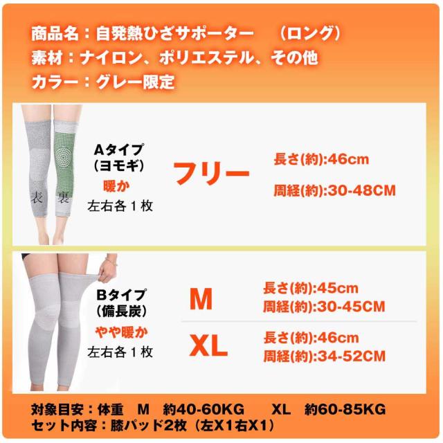 Bタイプ(備長炭)/M/長さ(約):45cm/周経(約):30-45cm;XL-長さ(約):46cm/周経(約):34-52cm;