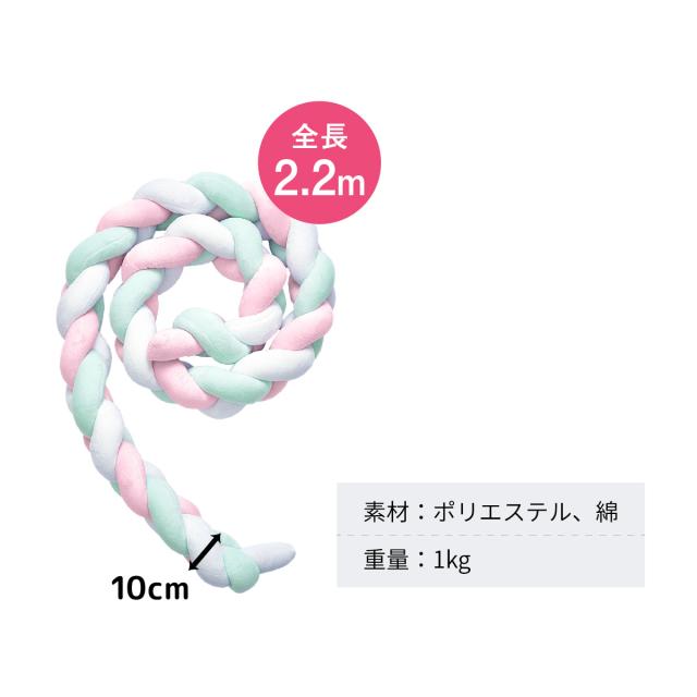 ベビーガード クッション ベビーベッドガード ミニベッド 2.2m 3本編み 新生児 赤ちゃん まくら 出産祝い かわいい 抱き枕 baby-bedgd agesugi_snk