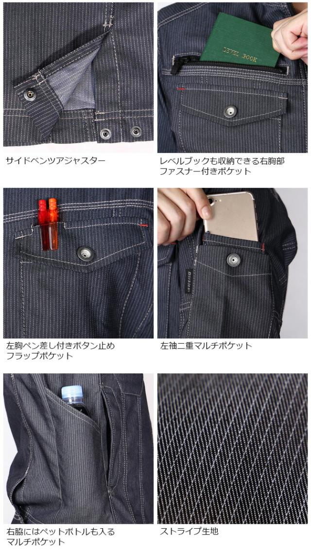 【在庫限り特価6,578→4,880円】ディッキーズ ストレッチ ピンストライプジャケット D-1111 メンズ レディース Dickies オールシーズン ワークウェア アウトドア 作業服 作業着
