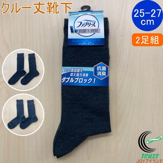 ファブリーズ 紳士靴下 平無地 クルー丈 2足組 25-27cm 正規品 ソックス 福助 fukusuke 靴下 メンズ 消臭 抗菌 防臭 無地 2足組 ネコポス対応