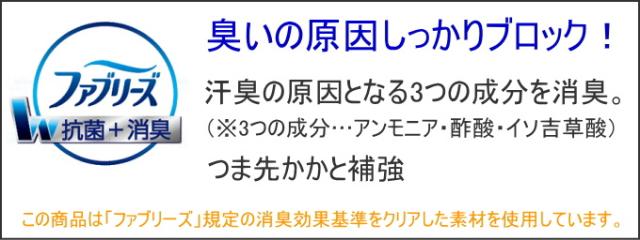 | 特徴 | 「ファブリーズ」規定の消臭効果基準をクリアした素材を使用した靴下です。 汗・菌の気になる臭いに対して強力消臭と抗菌防臭のダブルブロック。 汗臭の原因となる3つの成分(アンモニア・酢酸・イソ吉草酸)を消臭。 ■ネコポス(メール便:全国一律300円)での配送もお受けします。 【ネコポス便の条件とご案内】 メール便を指定してお買い上げの方に限りますので、配送方法を選択していない場合は宅配便(通常送料)となりますのでご注意ください。 ネコポス対応品以外もお買い上げの場合、ネコポスを選択することができなくなるため、通常の宅配便での手配となります。 大きさの都合上本商品は「2個」までネコポス対応となりますので、3個以上お買上げの場合はネコポスの複数個口か通常の宅配便で手配します。 ネコポスの送料はシステムの都合上「数量×送料(300円)」で自動計算されますが、ショップ側でいくつ入るか計算して送料を修正いたします。 『ネコポスについての補足』という画像に詳細を載せておりますので、ご注文前に必ずご確認ください。 送料無料条件をクリアした場合、まとめて宅配便で出荷させていただくことがございます。(どうしてもネコポスがいいという場合はお受けすることもできますが、ネコポス複数個口分の送料をいただきます。) ※住所を元に配達するため、住所不備による配達誤りなどについてはご対応できません。 ※ネコポスは転送ができませんので、ご注文を確定する前に必ずお届け先住所に間違いがないかご確認くださいますようお願いいたします。 ※手渡しではなく投函となるため、郵便受けがない場所へはお届けできません。 ※ネコポスは日時指定ができませんので予めご了承くださいませ。 ※ネコポスの詳細はヤマト運輸ホームページをご覧ください。 ■その他の靴下はこちら↓ 靴下 |