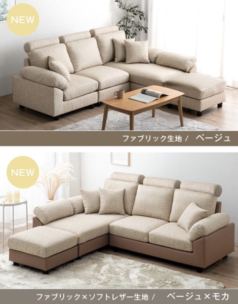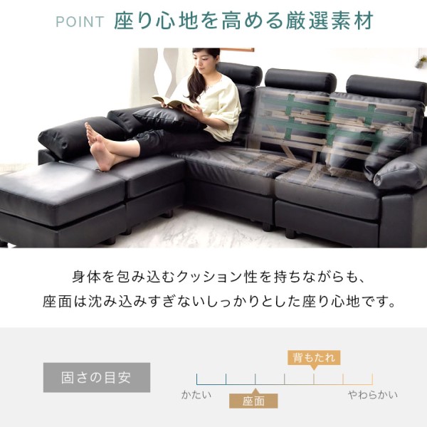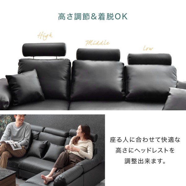RENEW ヘッドレスト付 カバーリング ハイバック カウチソファ L字 ポケットコイル 3人掛け 4人掛け レザー ソファ ソファー ソファセット カウチソファ ローソファ ローソファー 3P 4Pコーナー おしゃれ 北欧 【超大型】【後払/時間指定NG】