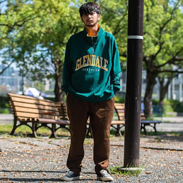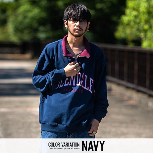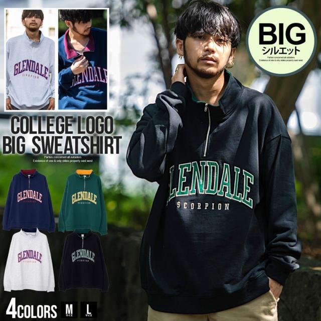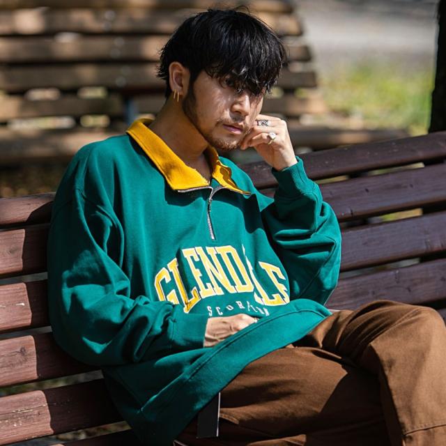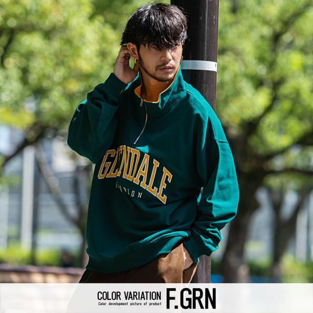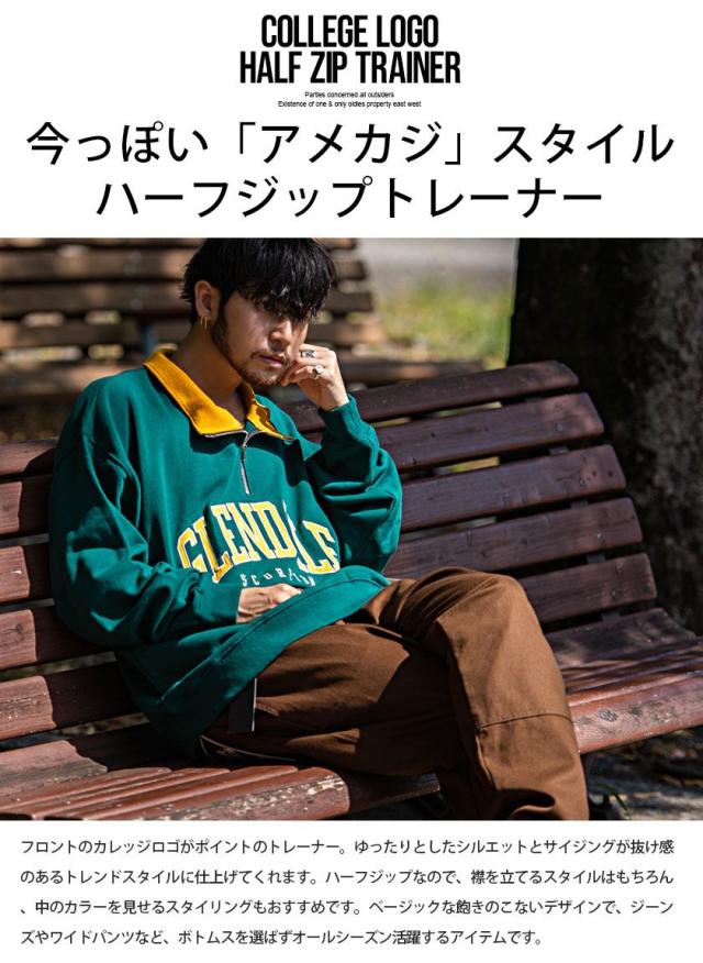 トレーナー メンズ 長袖 トップス スウェット スエット ビッグシルエット ロゴ カレッジロゴ ハーフジップ ジップアップ 刺繍 アッシュ グリーン ネイビー ブラック コットン ユニセックス ブランド カジュアル大人 カジュアル ファッション おしゃれ 秋 冬 ストリート ストリート系 ストリートファッション 韓国 韓国系 韓国ファッション 下北沢 下北系 古着 古着系 90s 90年代 2000年代 Y2K M L 男性 男 父の日 父の日ギフト 父の日プレゼント 20代 30代 40代 メンズファッション 東京 プレゼント 誕生日 記念日 贈り物 ギフト配送について