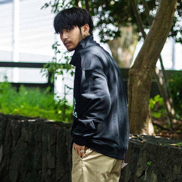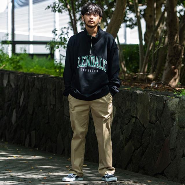 ハーフジップなので、襟を立てるスタイルはもちろん、中のカラーを見せるスタイリングもオススメです。