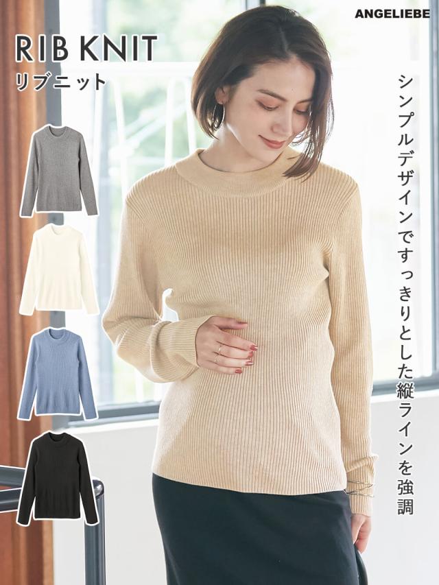 マタニティ 服 トップス リブニット 授乳服 妊婦服 長袖 マタニティトップス