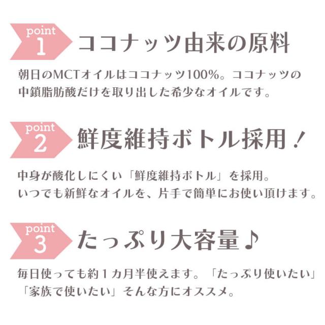 MCTオイル 500g 3本 セット 大容量 mct エムシーティー ダイエット 朝日 中鎖脂肪酸 oil オイル 油 バターコーヒー コーヒー ギー アイス クッキー クリーム ケト ケトン ケトン体 エネルギー 糖質制限 おすすめ 送料無料