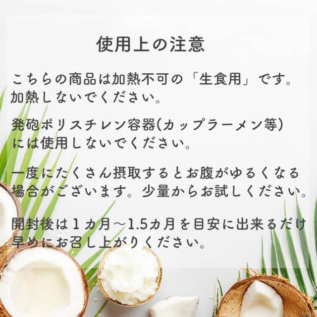 | 使用上の注意 | ●直射日光や高温多湿を避けて暗所で保存してください ●本品は加熱調理用の油ではありません ●油を直接飲むことはお控えください ●発泡ポリスチレン容器(カップラーメンなど)には使用しないでください ●開封後はなるべく早くお召し上がりください |