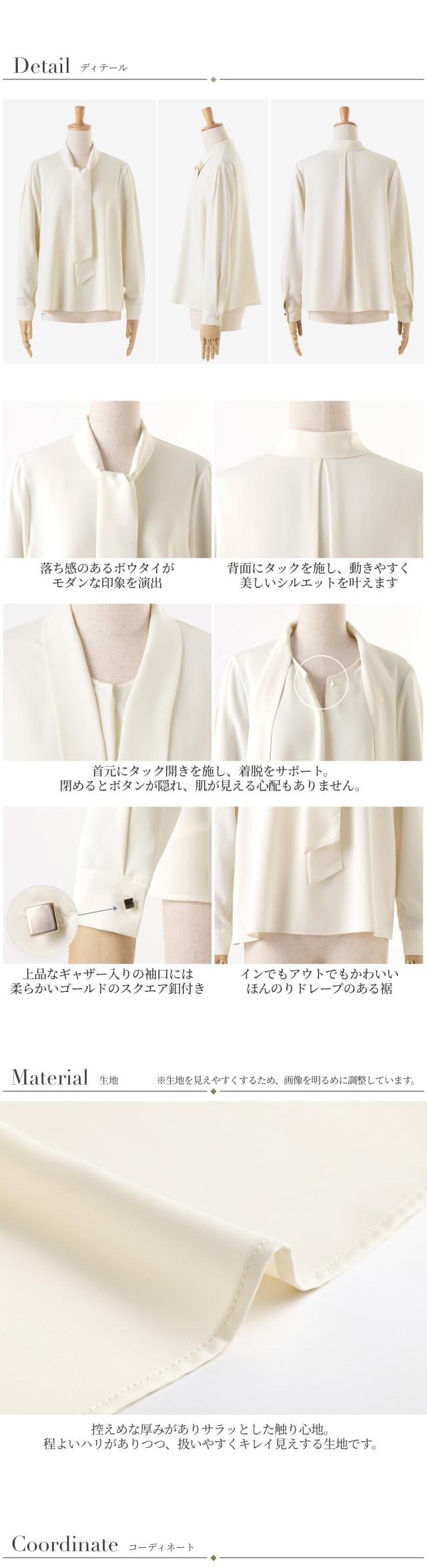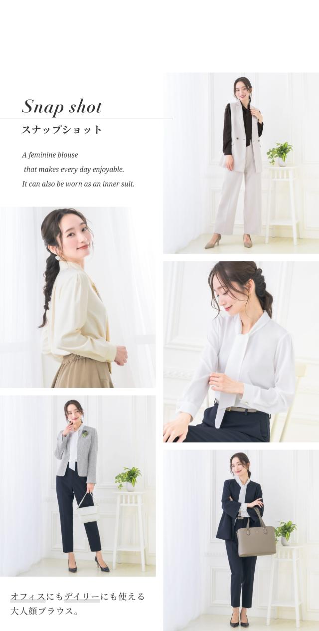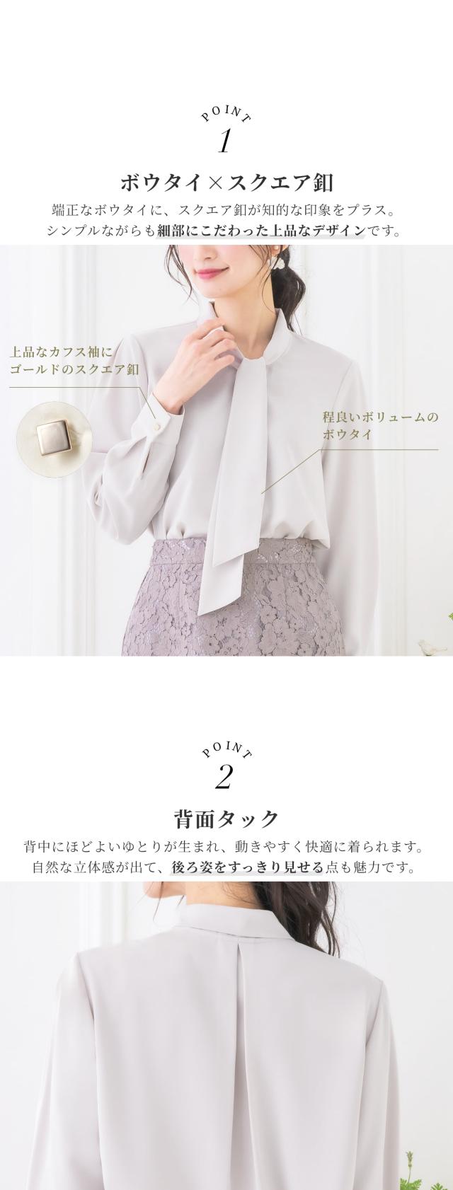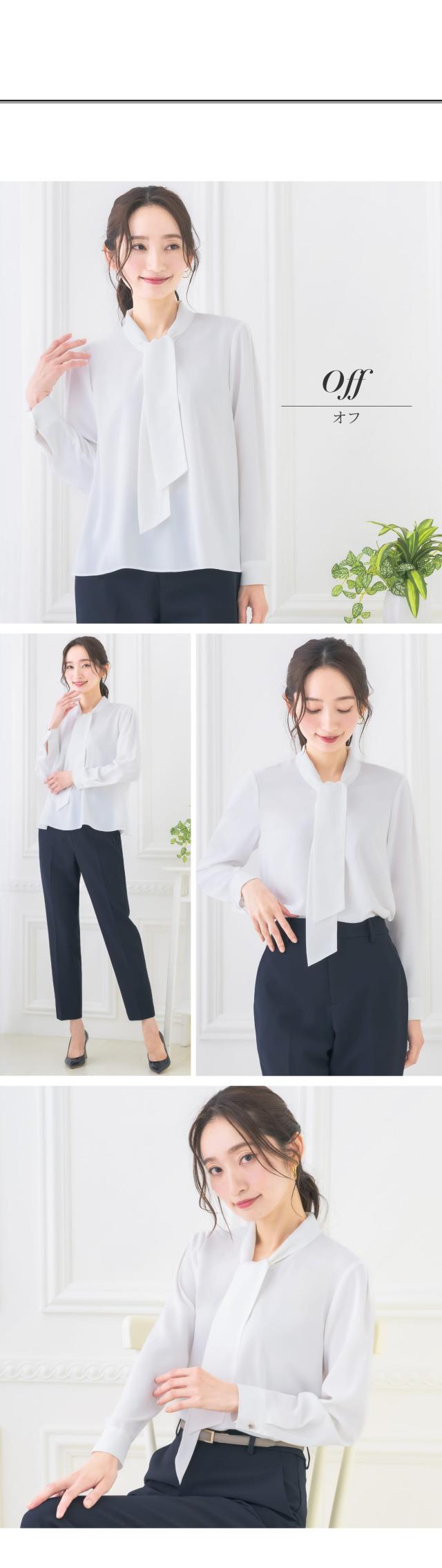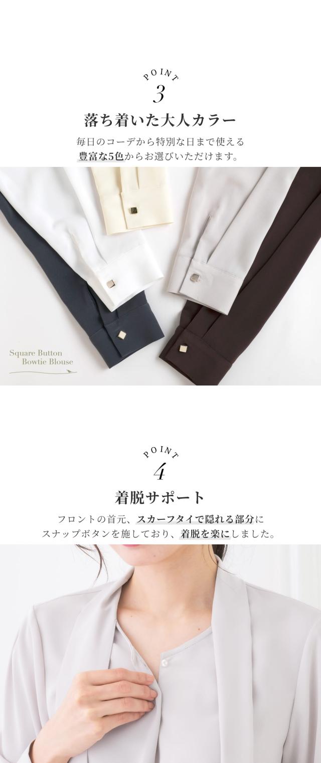 ブラウス レディース おしゃれ オフィス カジュアル 一枚着 ボウタイ スクエアボタン スーツ インナー トップス ビジネス 長袖 透けにくい 大きいサイズ 小さいサイズ 通勤服 仕事 春 夏 秋 冬 メール便送料無料 1/1