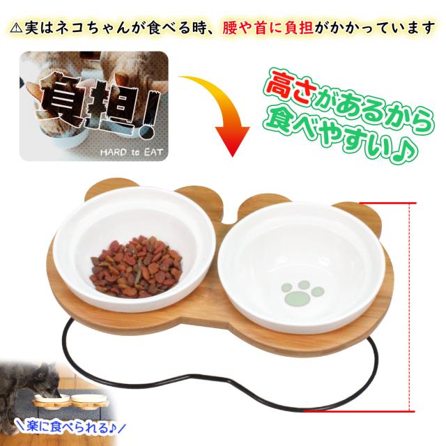 【首への負担を軽減】高さがあることで、ワンちゃんネコちゃんの腰や首への負担を軽減し楽に食べることができます。お皿は陶器製で一つずつ取り外せるので、洗いやすくいつでも清潔を保てます。