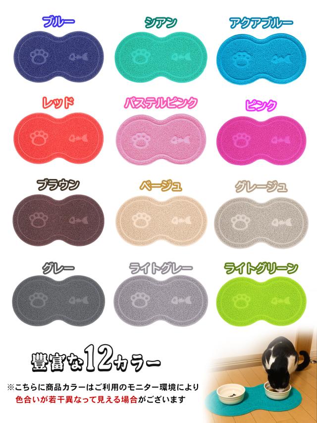 【好みで選べるカラー】エサ皿は4タイプから、ランチョンマットは12色から選択可能です。お部屋の雰囲気やインテリアに合わせ、お好みで組み合わせてお使いいただけます。
