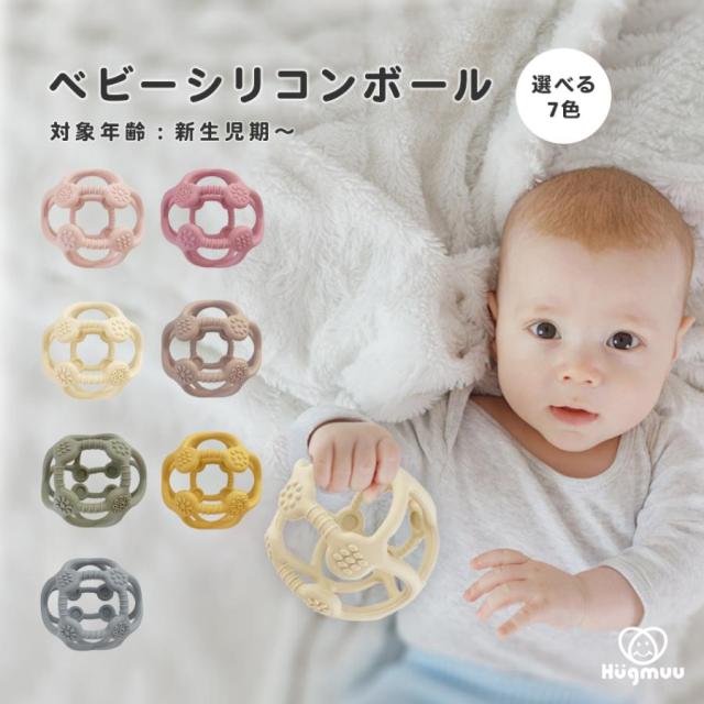 シリコンボール ベビーボール 歯固め 歯がため ベビー おもちゃ ベビートイ ファーストトイ にぎにぎ シリコン くすみカラー 知育 0歳 1歳 赤ちゃん Hugmuu 食品衛生検査クリア