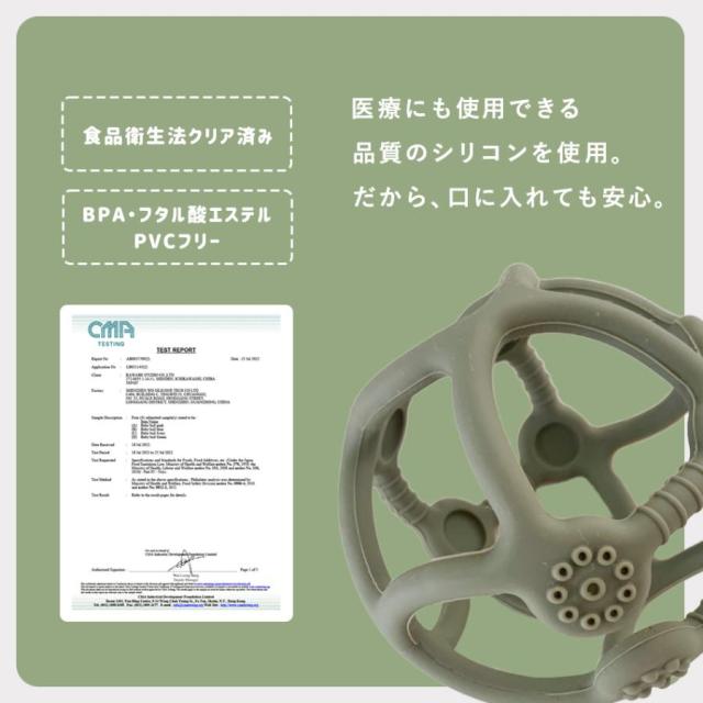 ・体に当たっても痛くない 柔らかいシリコンでできたボール型歯固め。