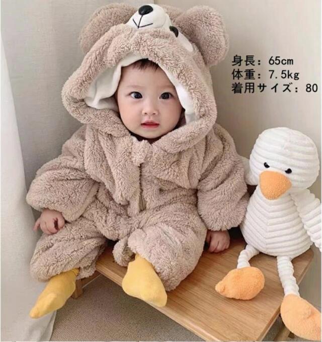 送料無料 短納期 子供服 女の子 男の子 秋冬 着ぐるみ ベビー服 出産祝い カバーオール ロンパース 赤ちゃん 着ぐるみ 新生児服 防寒着 フードニット オールインワン 長袖 お出掛け 厚手