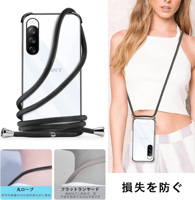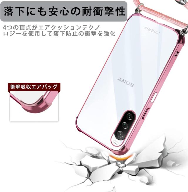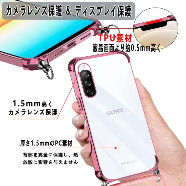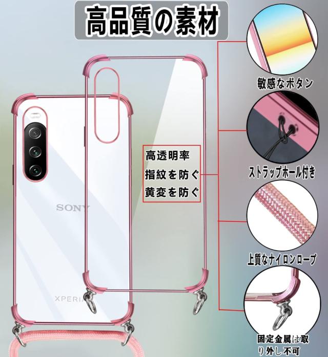 Xperia 10 IV ケース TPU クリア 透明 落下防止 耐衝撃 全面保護 柔軟性 Sony エクスペリア 10 マーク4 カバー メッキ加工 SO-52C SOG07 スマホケース スマホカバー simフリー ショルダー 肩掛け 首掛け 斜めかけケース ストラップ シリコン 軽量 取り外し可能 長さ調整可能