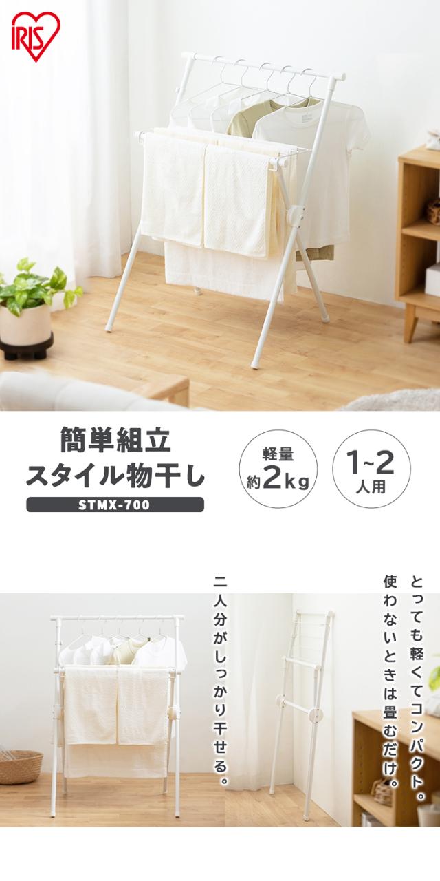 洗濯物干し 室内 折りたたみ コンパクト 収納 おしゃれ 軽量 スリム 組立簡単 工具不要 タオルハンガー 物干し 室内 部屋干し 梅雨 除湿機 サーキュレーター 花粉 一人暮らし 防犯 白 黒 スタイル物干し アイリスオーヤマ STMX-700 *