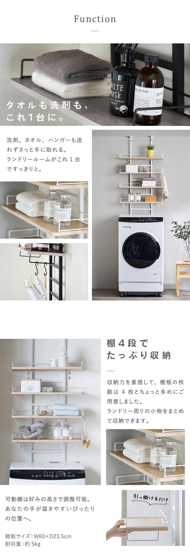 ランドリーラック 突っ張り 4段 スリム 幅60cm アイリスオーヤマ おしゃれ 木目調 防水パン対応 組立簡単 工具不要 縦型 ドラム式 洗濯機 ラック 収納ラック 隙間ラック ランドリー 収納 脱衣所 棚 つっぱり 一人暮らし 賃貸 洗濯機ラック TLR-4 *