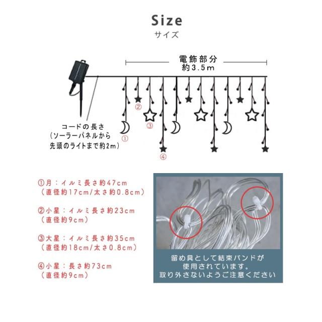 ■本体×1 (ソーラーパネル付きコントローラー × LEDイルミネーションライト大星×3/月×3/小星×6)