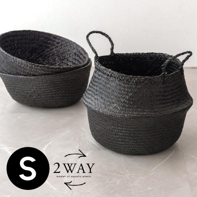バスケット かご Sサイズ 2way シーグラス ラウンド ブラック 黒 折りたたみ W 30cm D 30cm H 26cm ハンドル付き 籠 収納 51292