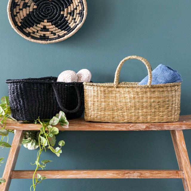 かご バスケット シーグラス製 収納 持ち手 バッグ バック トート カゴ 籠 収納バスケット スリッパ収納 ランチバッグ ランチバック 荷物入れ 見せる収納 ハンドル 横長 スリム おしゃれ 北欧 ハンドメイド リゾート BOHO ナチュラル モダン エスニック アジアン雑貨 51241