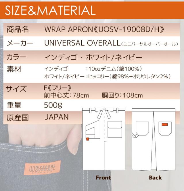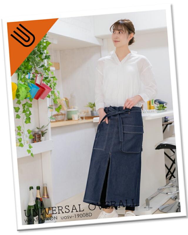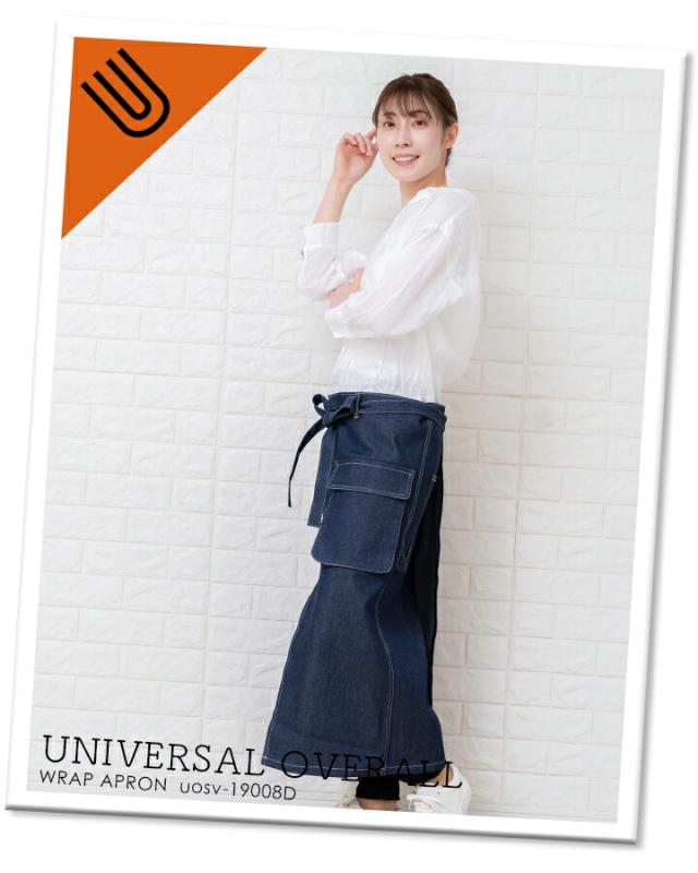 ユニバーサルオーバーオール ラップエプロン UOSV-19008dh デニム 男女兼用