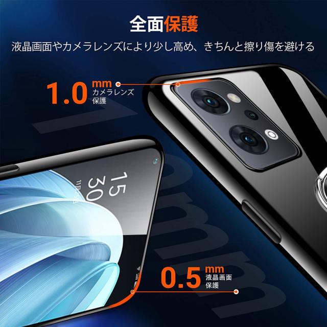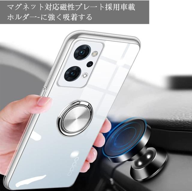 OPPO Reno7 A ケース TPU リング付き クリア 耐衝撃 OPG04 A201OP スタンド機能 背面透明 オッポ リノ7 エー カバー マイクロドット加工 オッポ 2022 新型 楽天モバイル スマートフォン スマホケース スマホカバー simフリー