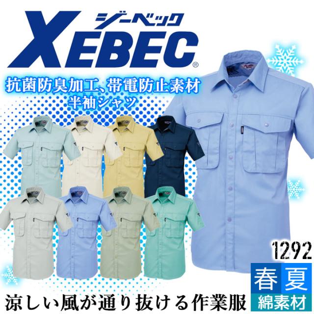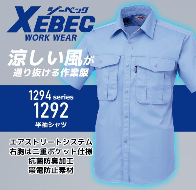 半袖シャツ ジーベック 1292 春夏 通気性 抗菌 防臭 帯電防止 メッシュ 爽やか 作業服 作業着 XEBEC 男女兼用 シャツ ユニフォーム 1294シリーズ