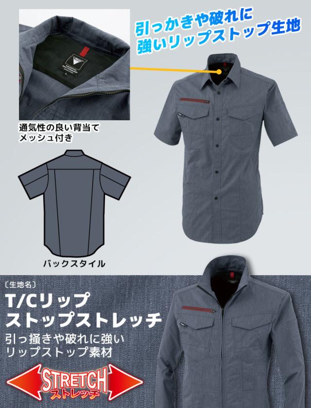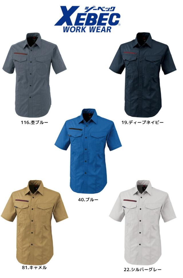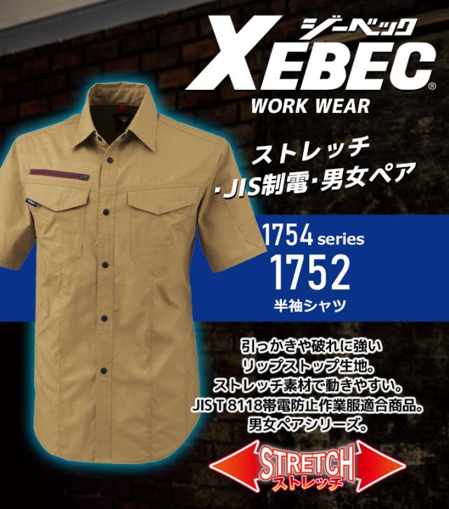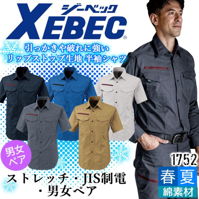 半袖シャツ ジーベック 1752 春夏 ストレッチ 帯電防止 JIS制電 通気性 作業服 作業着 XEBEC 男女ペアシリーズ リップストップ生地 シャツ ユニフォーム 1754シリーズ