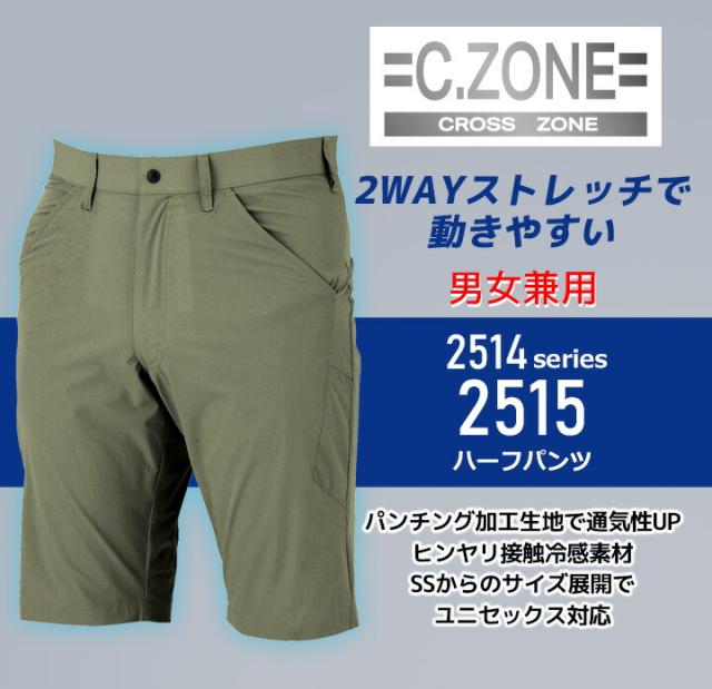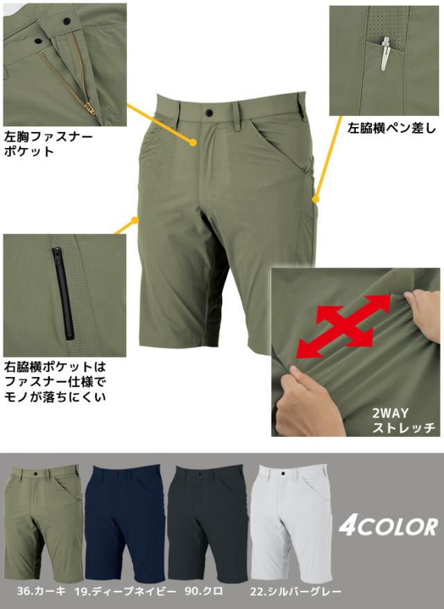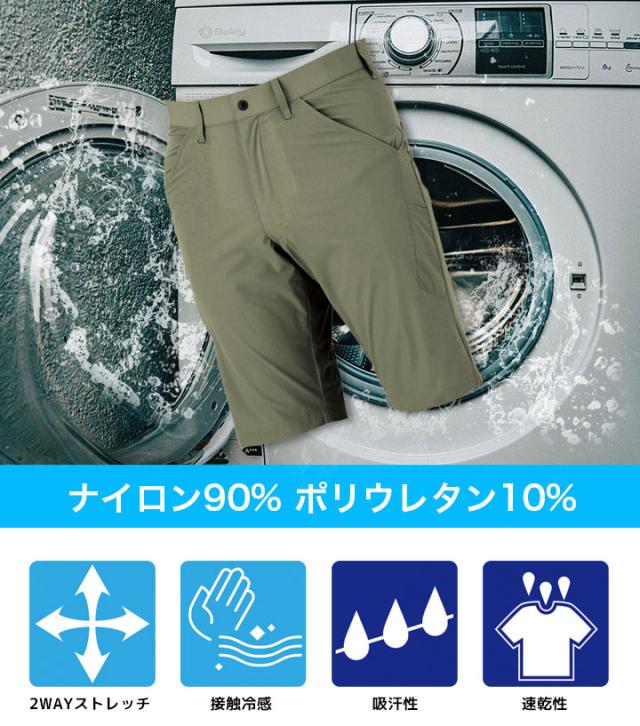 ハーフパンツ 接触冷感 ジーベック 2515 春夏 涼しい ストレッチ ショートパンツ 通気性 吸汗性 速乾性 作業服 作業着 XEBEC 半ズボン 男女兼用 ユニフォーム カジュアル