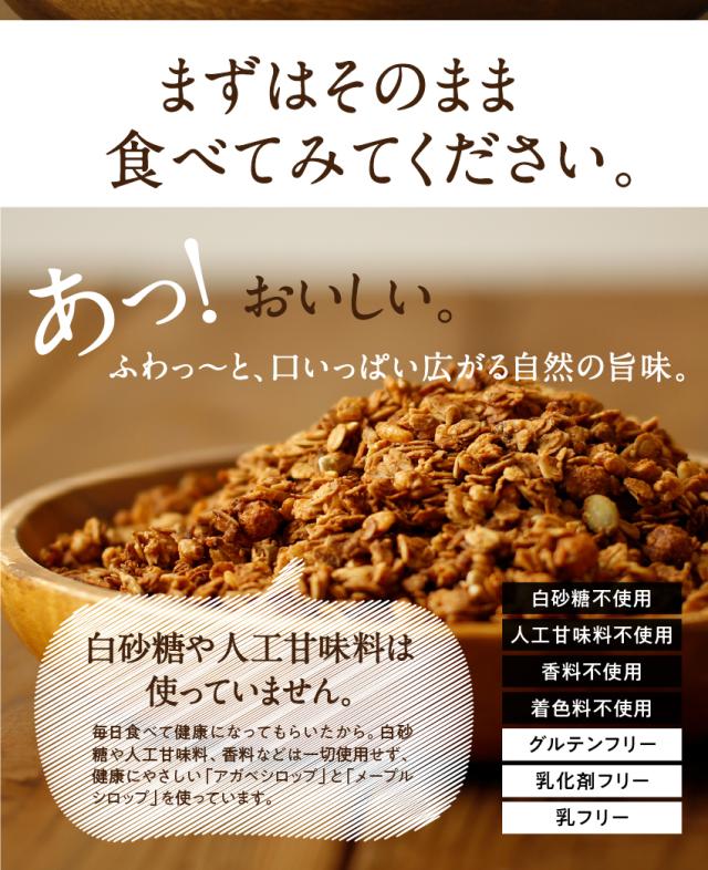 カラダへの優しさ、美味しさにもとことんこだわった健康食グラノーラに仕上げました。