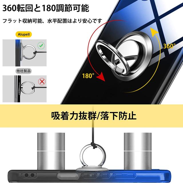 リング部分はマグネットになっており、携帯ケースと一体型なのでワイヤレス充電ができません。充電するときはケースを外してください。