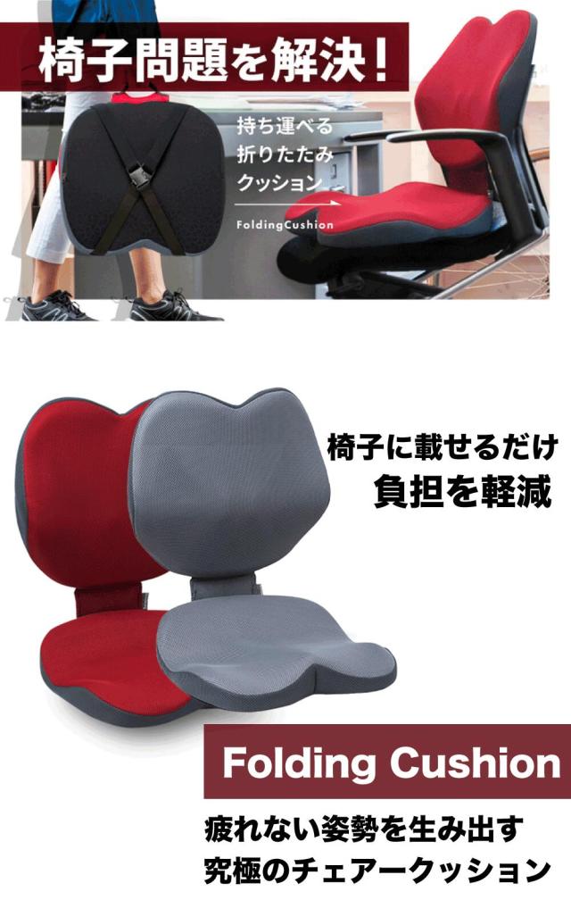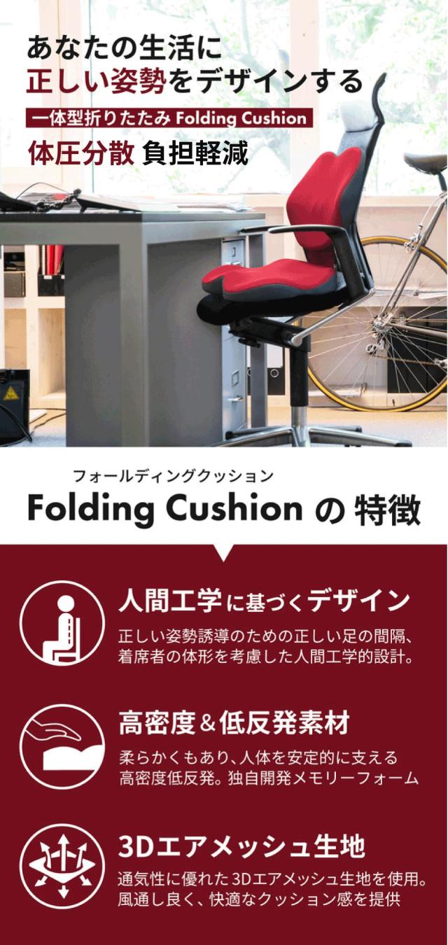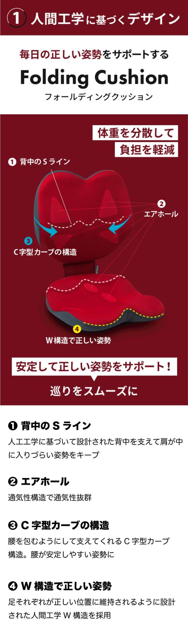 姿勢矯正 折りたたみフォールディングクッション 持ち運び リモートワーク テレワーク オフィス ゲーミングチェア 自宅 椅子 イス 正しい姿勢 低反発 車 座席 サポート メッシュ生地 肩こり 腰痛 負担軽減 体圧分散 C字型カーブ Sカーブ